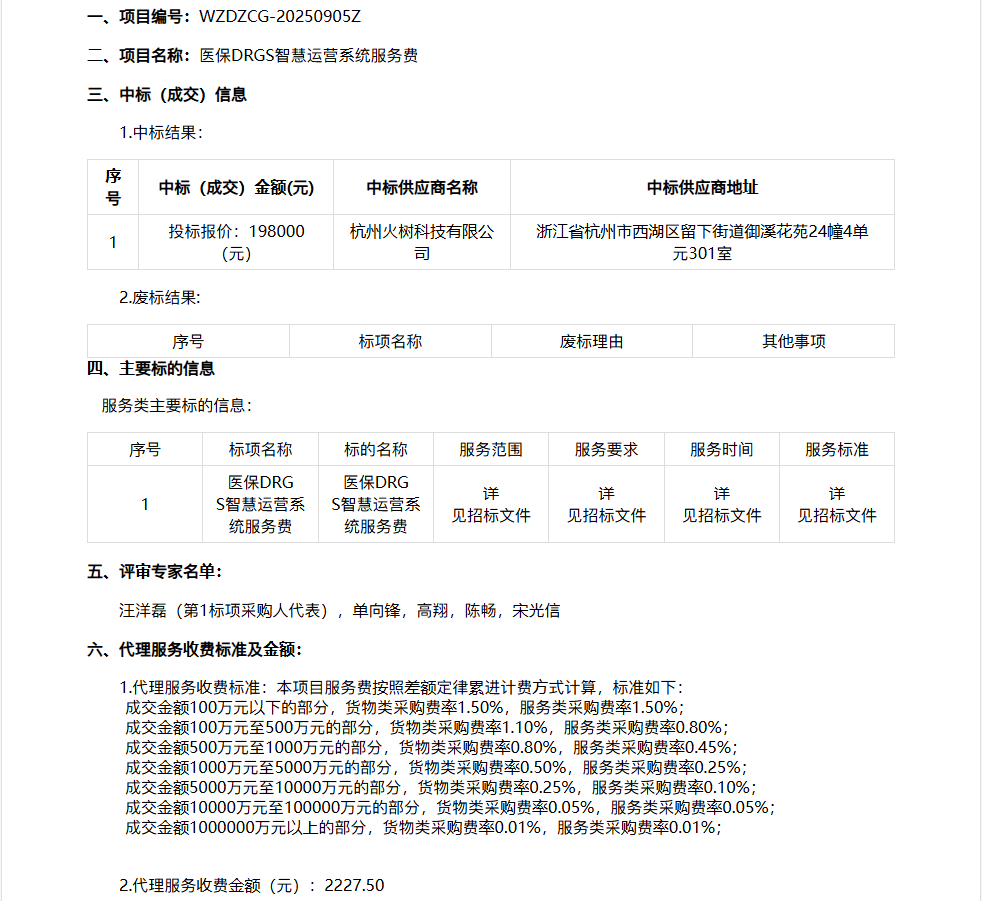 關于溫州市中醫院醫保DRGS智慧運營系統服務費項目的中標(成交)結果公告